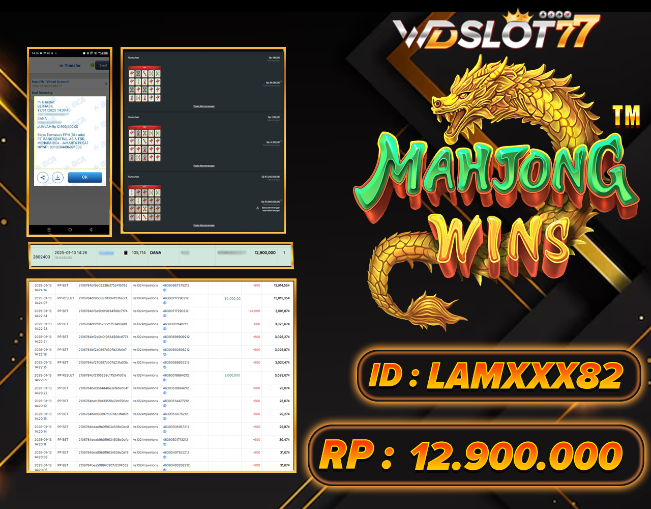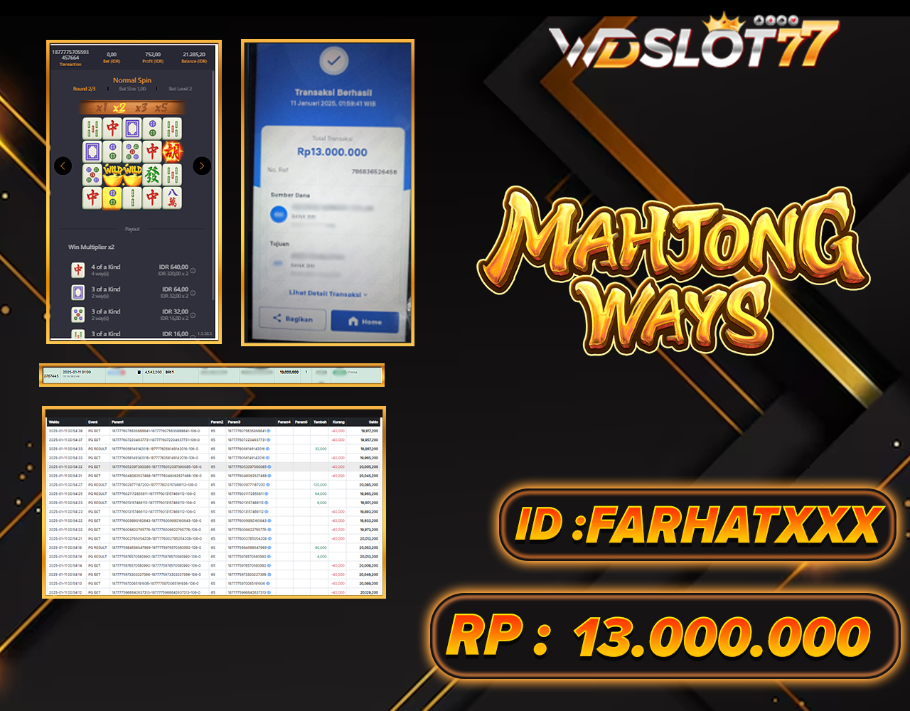 JACKPOT MAHJONG WINS BONUS 13 JANUARI 2025