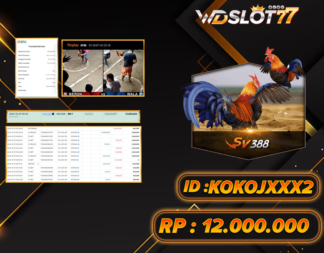 JACKPOT SABUNG AYAM SV388 07 DESEMBER 2024