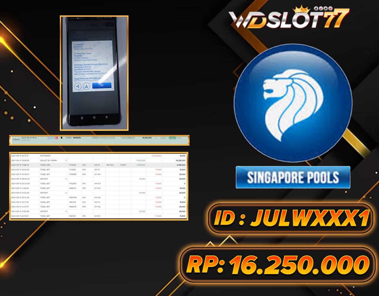 JACKPOT SINGAPORE POOLS 16 SEPTEMBER 2024