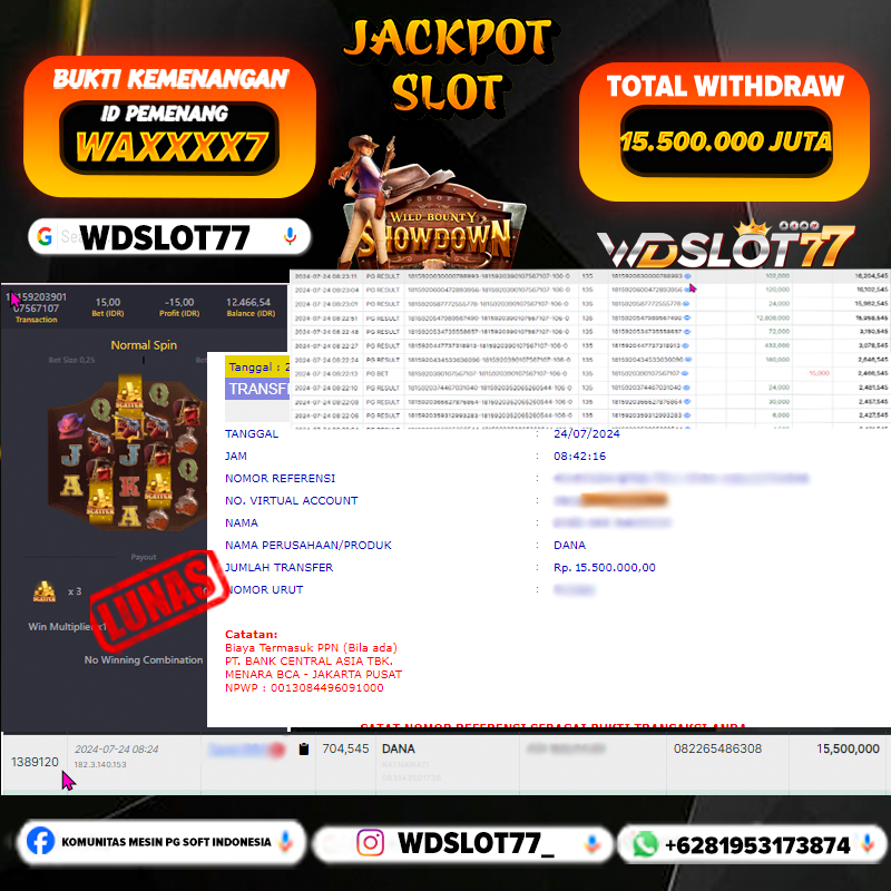 TOTAL HADIAH JACKPOT 15.500.000 JUTA RUPIAH