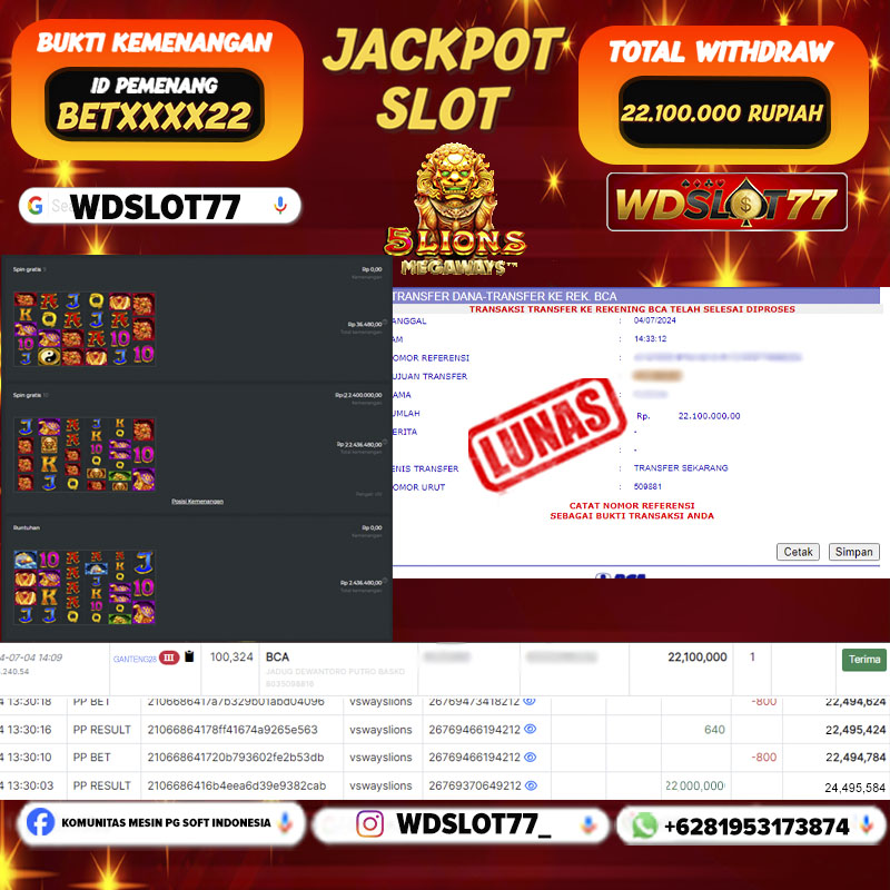 TOTAL HADIAH JACKPOT 22.100.000 JUTA RUPIAH