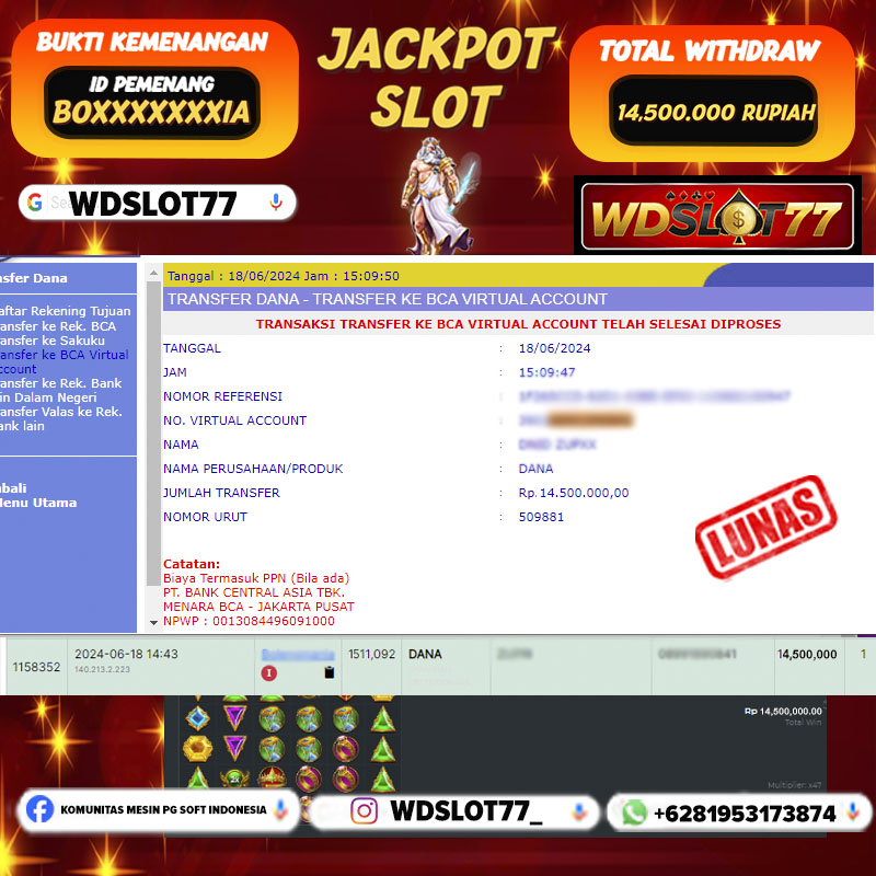 TOTAL HADIAH JACKPOT 14,500.000 JUTA RUPIAH